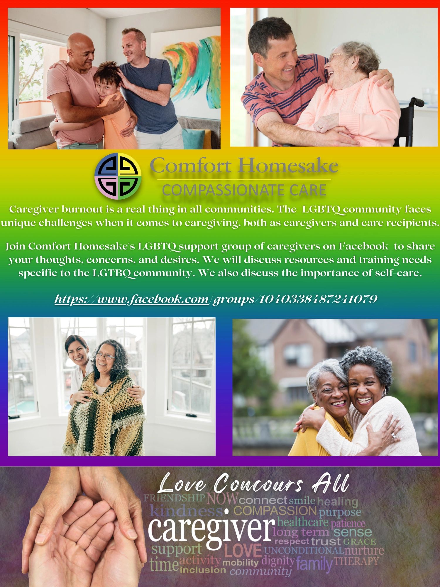 Join our LGBTQ Caregiver Support Group on Facebook - https://www.facebook.com/groups/1040338487241079 and lend your voice to the conversation. Comfort Homesake is now partnering with @oaklandlgbtqcenter for Elder Services #agewithpride. Click here for more information.